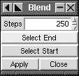 Selektiere zwei Objekte und wähle dann die Anzahl der Schritte für die Mischung (blend) Je mehr Schritte du wählst, desto glatter und realistischer der Effekt. Mit 200 Schritten kannst du den Anschein einer Sphäre erwecken, von einem großen farbigen Kreis und einem kleinen weißen Kreis darüber. Für das obige Beispiel habe ich drei "Blendeffekte" zusammen benutzt (6 Objekte, 2 zu 2). Blend arbeitet nur mit zwei Objekten und das Ergebnis kann nicht mit einem anderen "Blend" oder einem Objekt kombiniert werden. Aber es ist möglich, es durch Selektion bestimmter Teile zu verändern, um die Schritte oder die Farbe zu ändern.