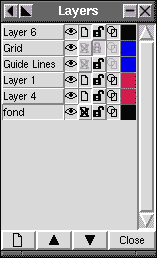 Per default wird eine neu erzeugte Ebene über den anderen plaziert; man kann den Level der Ebene mit den Pfeilen unten auf der "Layers" Palette verändern.