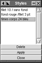 Styles : Erstellt einen Stil (Farbe, Linienbreite ...) und wendet es auf viele Objekte an, ohne daß alle Änderungen mit einzelnen Werkzeugen herbeigeführt werden müssen.