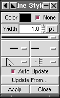 Line Style : dient dazu, die Farbe der Linie, ihre Dicke und die Form ihrer Ecken und Enden auszuwählen.