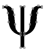 Vektorisieren von Text (hier ein "y" aus dem symbol font) wandelt ihn in ein Objekt, d.h. eine vektorisierte Kurve, die durch Ziehen an ihren Punkten und mit der Hilfe der "Curves" Dialogbox veränderbar ist.