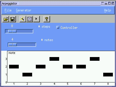 [Random Arpeggio] I also find it interesting to use this generator. An arpeggio can be described as a chord that is played one note at a time. In other words, instead of playing all notes of a chord at once they are played individually one after the other. Sometimes it really gives very nice sounds! I especially like to copy the chords first to another track so that I have one track with the chords and one with the arpeggio. Usually it gives a very nice sound!