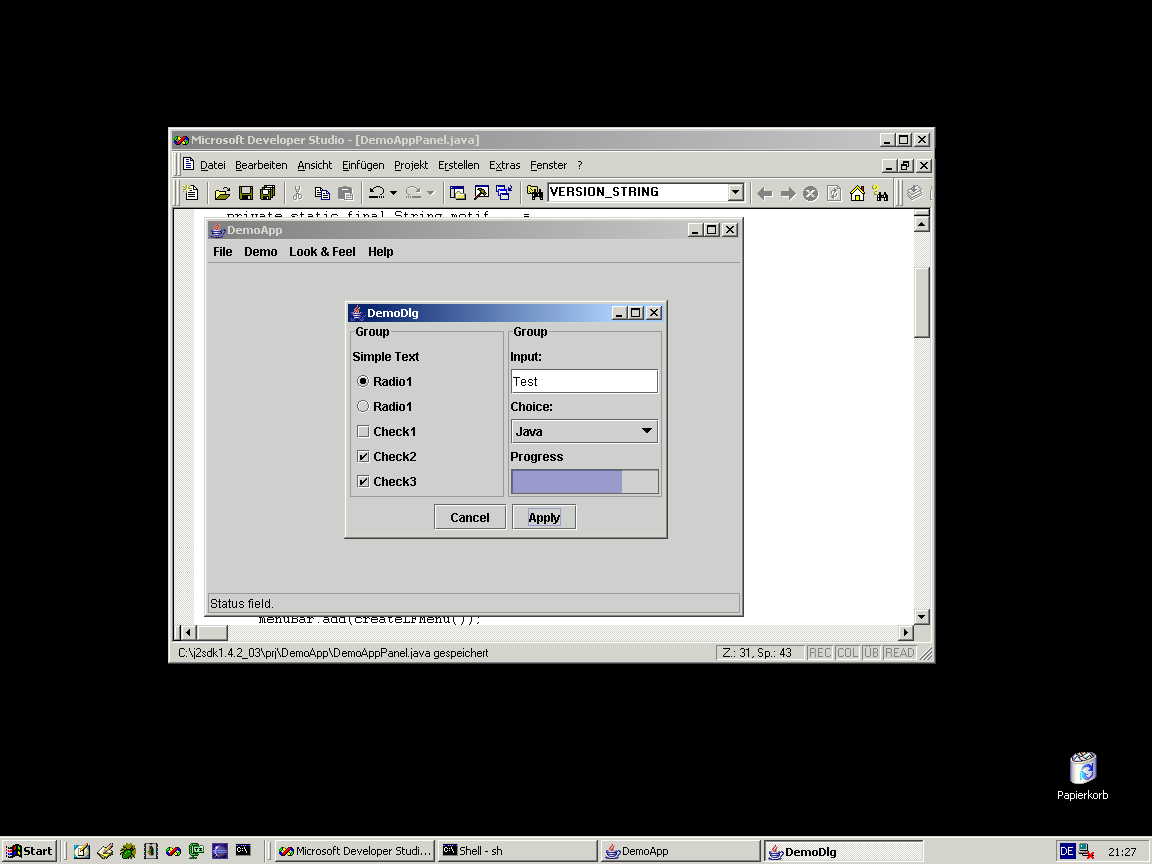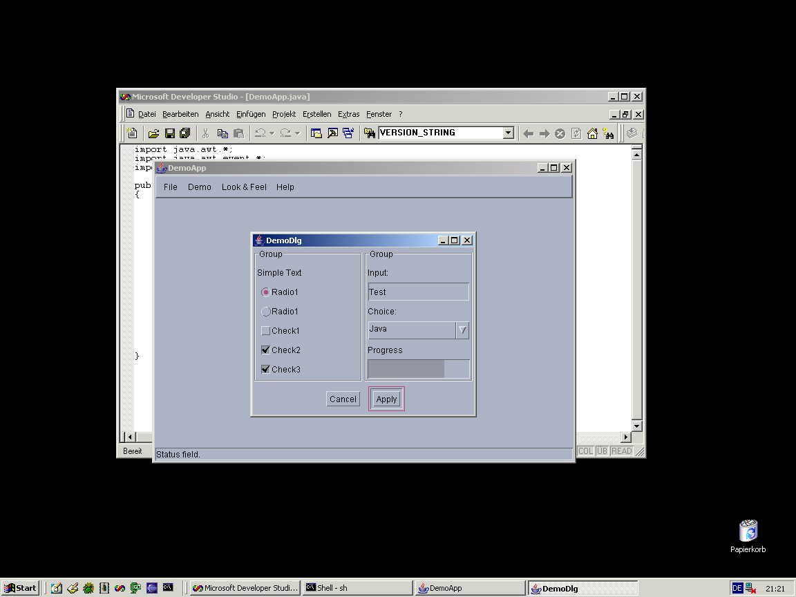 1. Librerie native: Per la visualizzazione degli elementi vengono utilizzate le corrispondenti routine dei sistemi operativi. Questo assicura che tutti i controlli appaiano come le applicazioni standard del sistema operativo. Una libreria nativa presenta controlli diversi sotto Linux piuttosto che sotto Windows 2000 o XP.