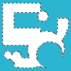 Het vage (fuzzy) selectie-gereedschap, om een kleurvlak te selecteren. Dit gereedschap is enkel precies wanneer je een vorm selecteert die een vrij constante kleur heeft. Het is dikwijls handig om eerst een een ruwe selectie te maken met behulp van de "shift" en "ctrl" toetsen. De ruwe selectie verfijn je dan met de andere selectie-tools.