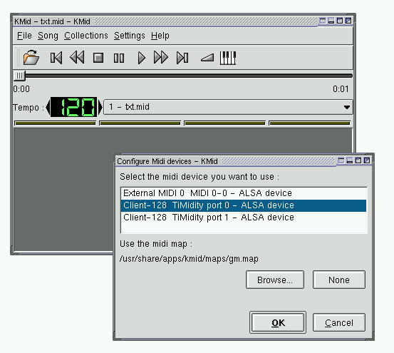 af te spelen. KDE bevat het programma kmidkmid (niet te verwarren met kmidi)